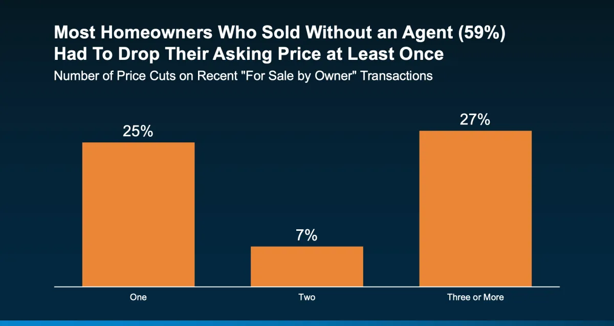 This is a common scenario for homes sold without an agent. According to the same NAR report, 59% of homes sold without an agent had to lower their asking price at least once (see the orange section in the graph below).
