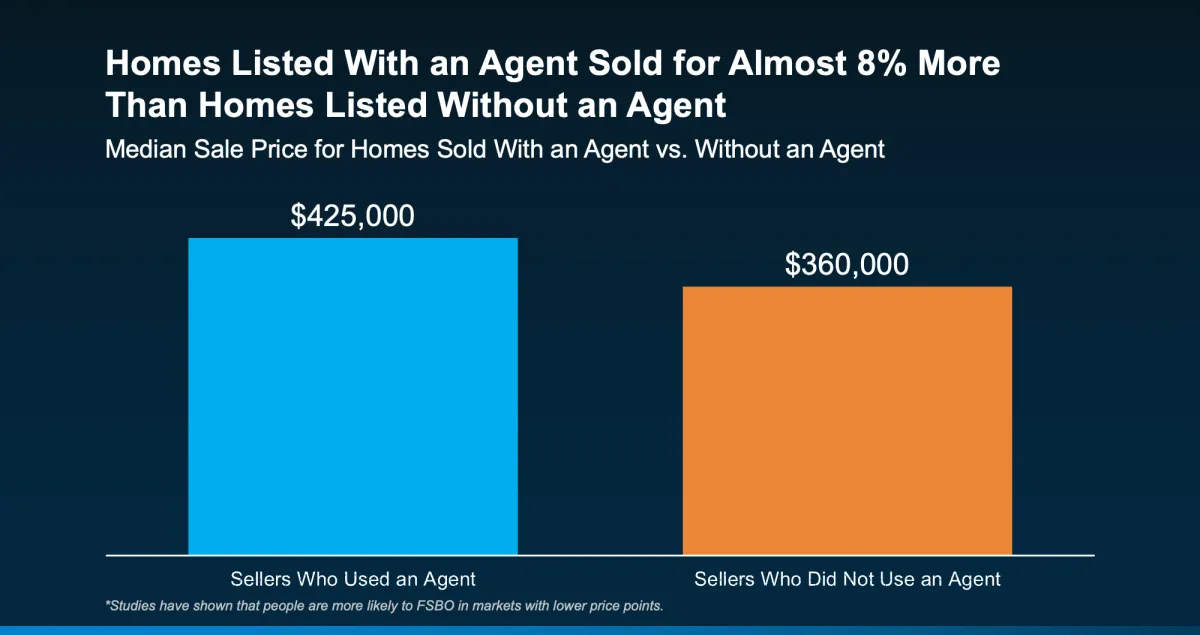 According to NAR, homes sold with an agent typically sell for nearly 8% more than those sold without one.