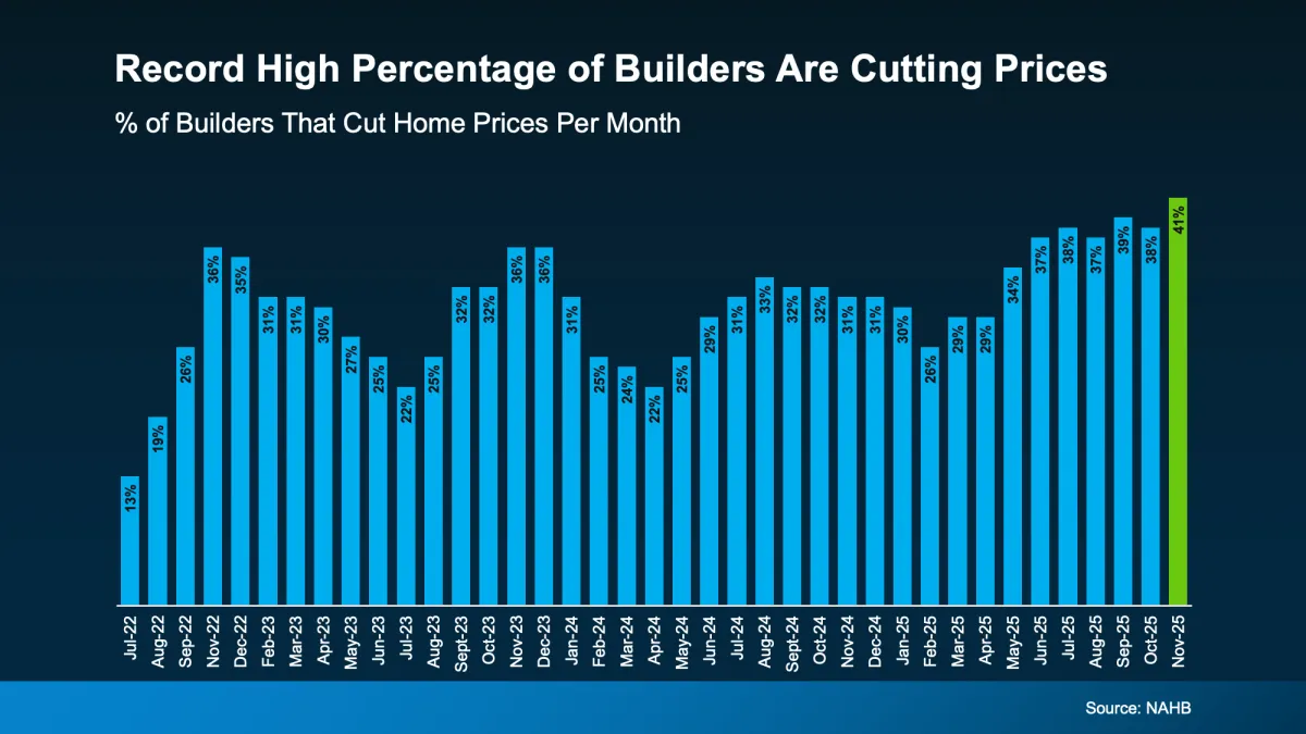 These incentives aren’t rare. The National Association of Homebuilders reports that 65% of builders are offering some type of incentive, and in November, 41% reported cutting prices, marking a record high in the post-COVID era.